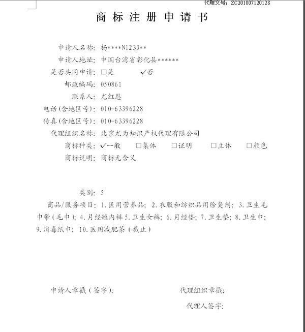 12、商品和服務,這里指商品和服務的填寫,應按《商標注冊用商品和服務國際分類表》中所列的商品和服務類別順序填寫。如:第一類,乙醇,工業用酒精;第五類,阿司匹林,嬰兒食品;第九類,音響,顯像管。在填寫時不得把第九類排在第五類前,或把第五類排在第一類前。